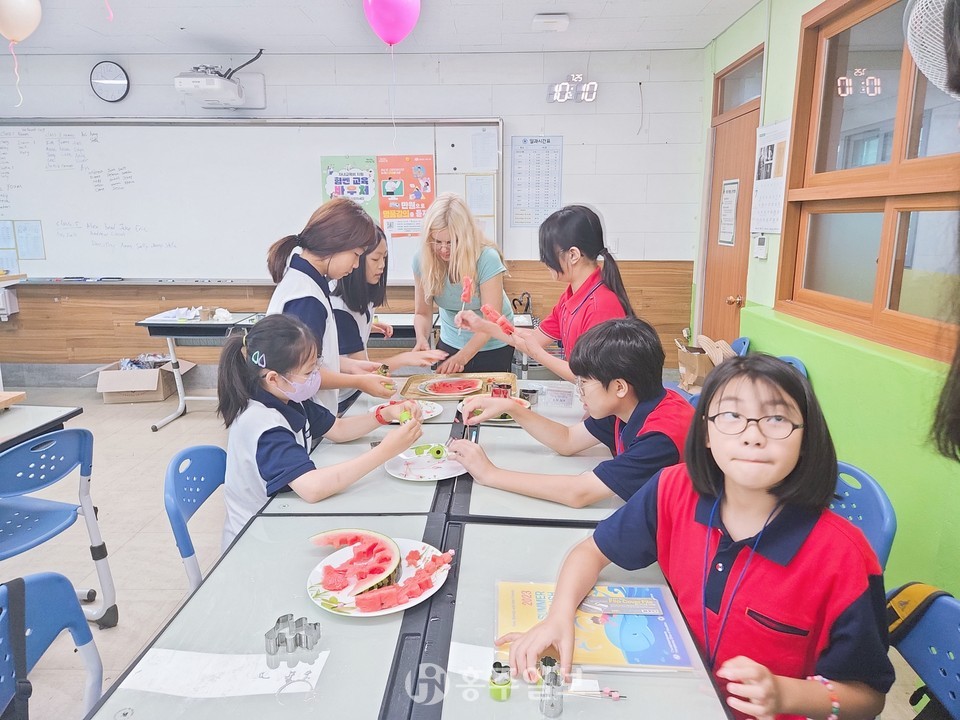 충청남도홍성교육지원청(교육장 이정순)은 지난 24일부터 28일까지 서해삼육중학교에서 홍성 관내 초‧중학교 학생 59명을 대상으로 홍성 외국어 아카데미 여름방학 영어캠프를 운영한다.<사진>