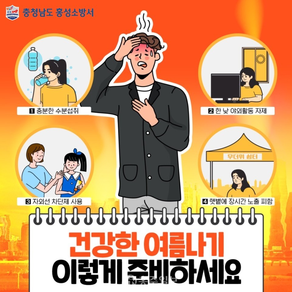 홍성소방서(서장 김경철)는 여름철 폭염으로 인해 발생할 수 있는 각종 온열질환에 각별히 주의를 당부한다고 밝혔다.<사진>