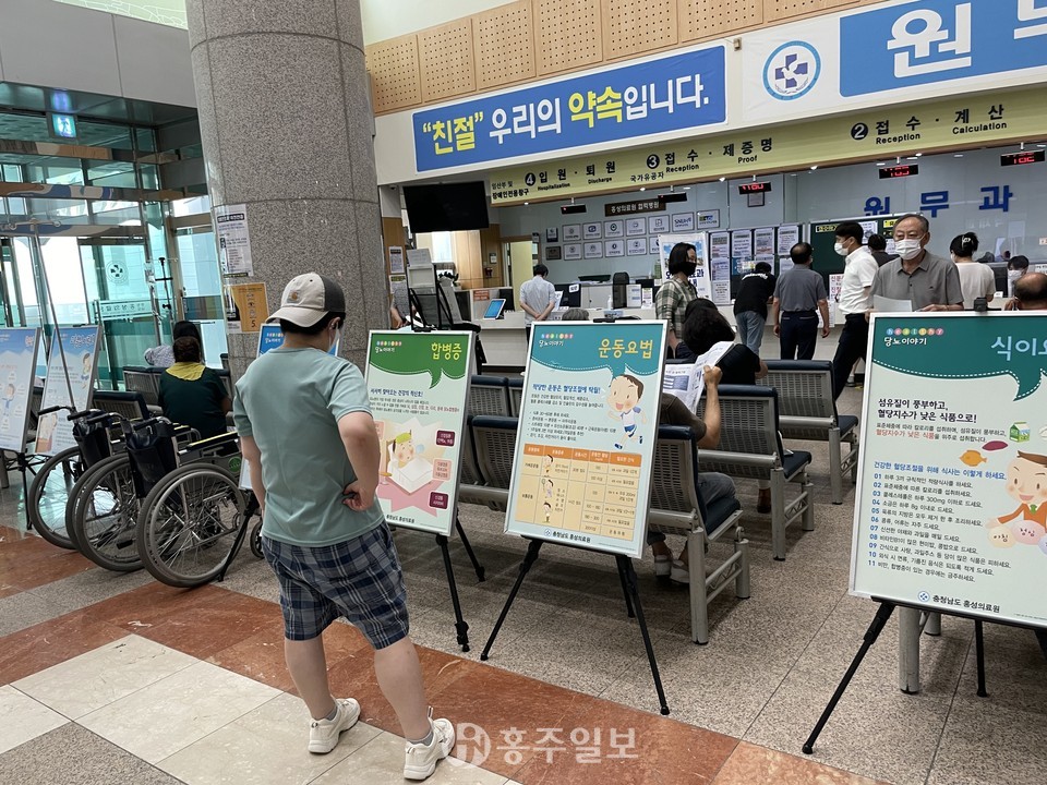 충청남도 홍성의료원(원장 김건식) 공공의료팀에서는 내원객을 대상으로 만성질환(고혈압, 당뇨병)에 대한 예방·관리법으로 합병증을 예방하는 만성질환 인식개선 캠페인을 26일 본관 1층 로비에서 진행했다.<사진>