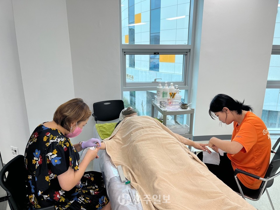 이 체험부스에서는 머드마사지를 비롯한 네일아트 등 평소 체험하지 못한 뷰티 케어 프로그램이 운영 중이다. 실제 얼굴, 팔, 다리 등 머드를 통해 마사지를 받고, 그 효과를 현장에서 직접 느낄 수 있다는 점에서 만족도가 높다.