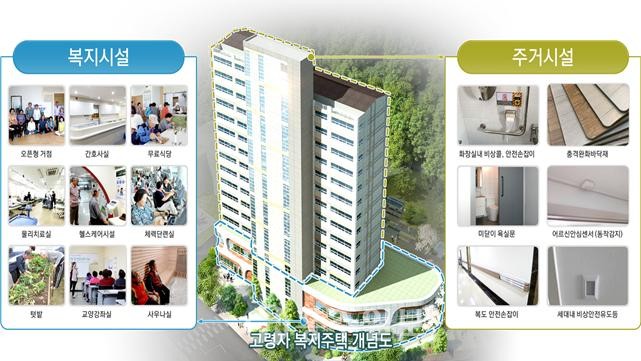 국토교통부에서 주관하는 고령화 시대에 대비해 어르신의 주거안정과 돌봄, 요양 등 맞춤형 주거복지 서비스를 제공하는 고령자복지주택은 65세 이상 어르신들의 건강과 생활환경을 고려해 무장애 설계가 적용된 맞춤형 주택으로 주거지 내에서 복지서비스를 이용할 수 있도록 주택과 복지시설을 복합 건설하는 공공임대주택이다.