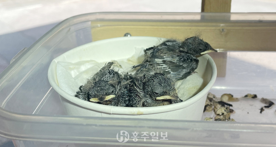 새끼제비야 빨리 건강해져 어미와 함께 비상하는 날을 보고싶구나.