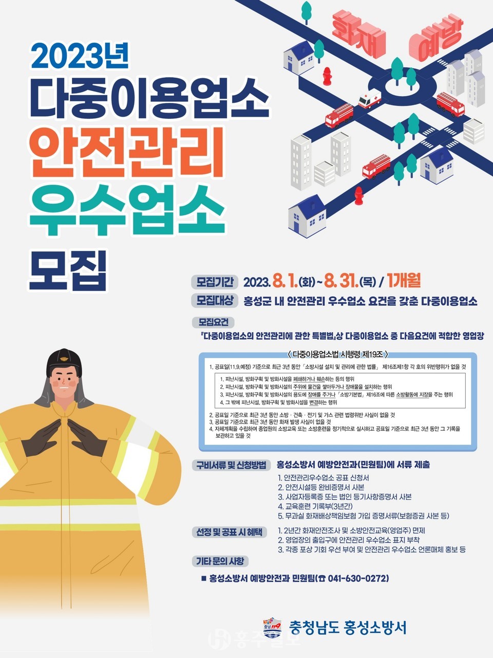 홍성소방서(서장 김경철)가 오는 31일까지 다중이용업소 안전관리 우수업소 선정을 위한 신청을 받는다.