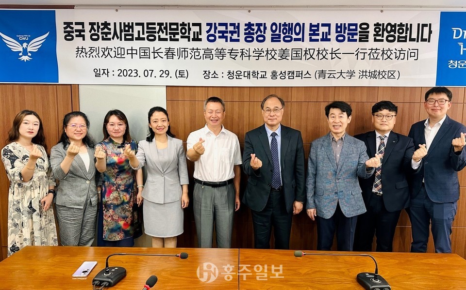 이날 양교는 상호 논의를 위해 장춘사범고등전문학교 강국권 총장을 비롯한 호해연 교류협력처장, 교굉 유아교육과당총서기, 주미나 교무과학연구부처장 등이 참석했으며, 청운대는 민병현 대외교류처장, 이진호 대외협력팀장, 오세현 국제학생지원팀 담당자 등이 참석했다.