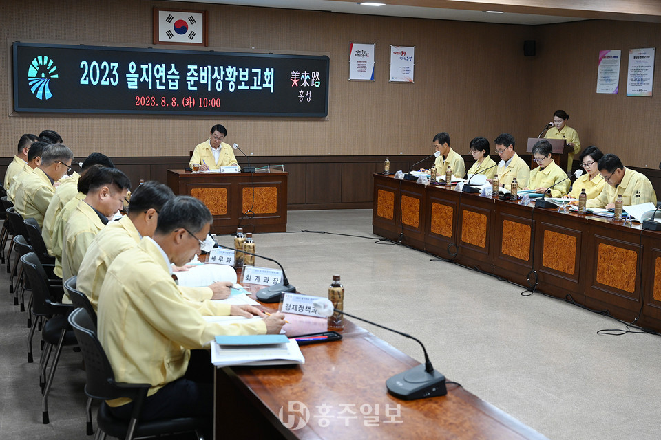 홍성군은 지난 8일 군청 회의실에서 이용록 군수 주재로 담당관, 과장, 관계 공무원 등 30여 명이 참석한 가운데 빈틈없는 을지연습을 위한 ‘2023년도 을지연습 준비상황 보고회’를 개최했다.<사진>
