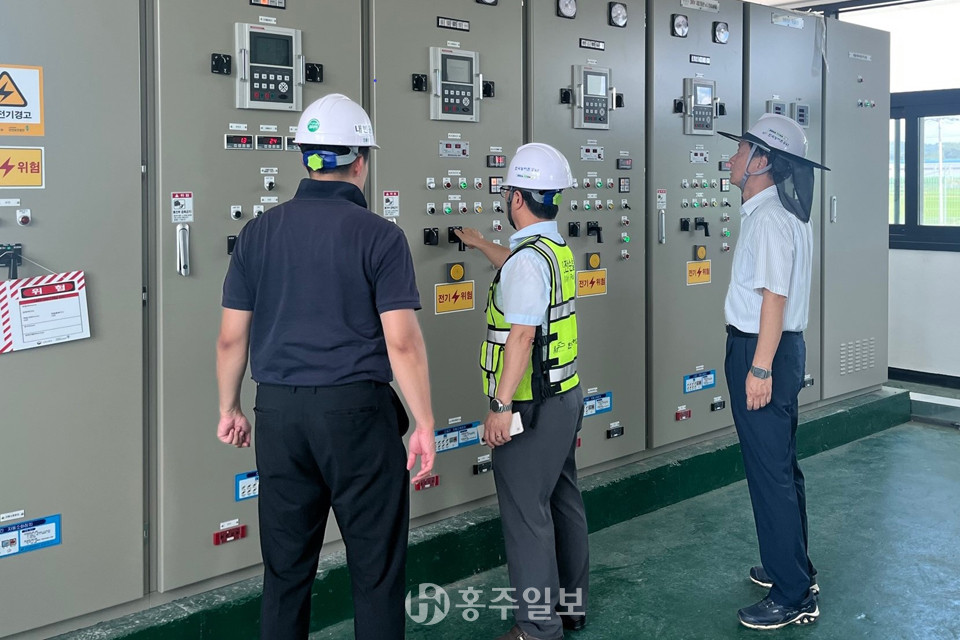 한국농어촌공사 홍성지사(지사장 박운근)는 지난 8일 북상 중인 제6호 태풍 ‘카눈’을 대비해 홍성지사가 관할하고 있는 화양1배수장 등 6개소에 대해 시설물 안전점검을 실시했다.<사진>