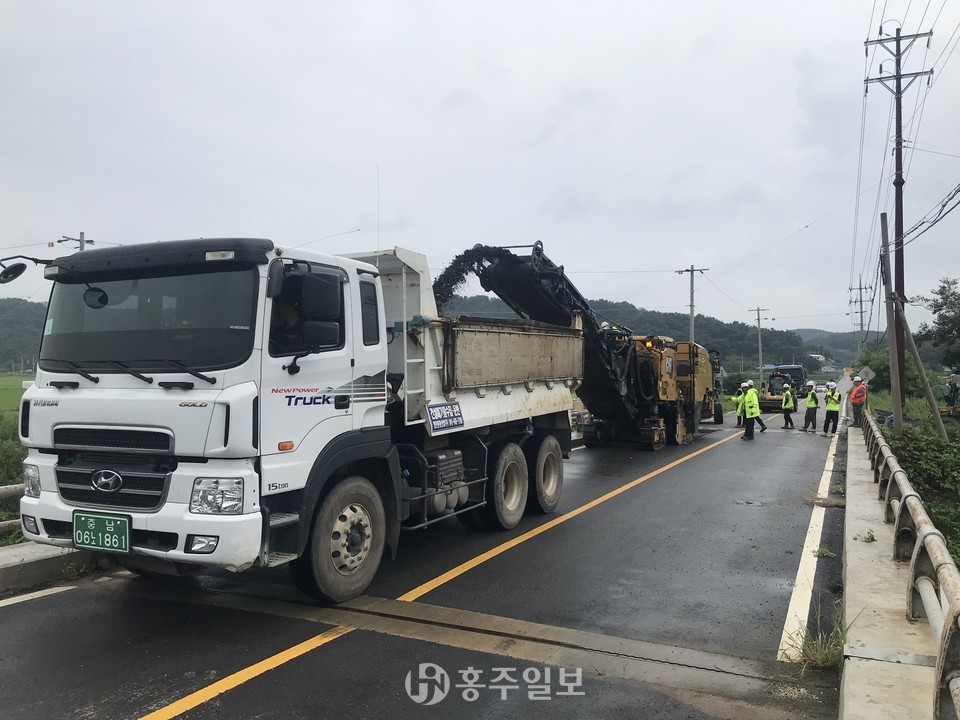 홍성군은 추석 전까지 공사 완료를 목표로 지난 11일 갈산 와룡교 보강공사를 들어갔다.<사진>