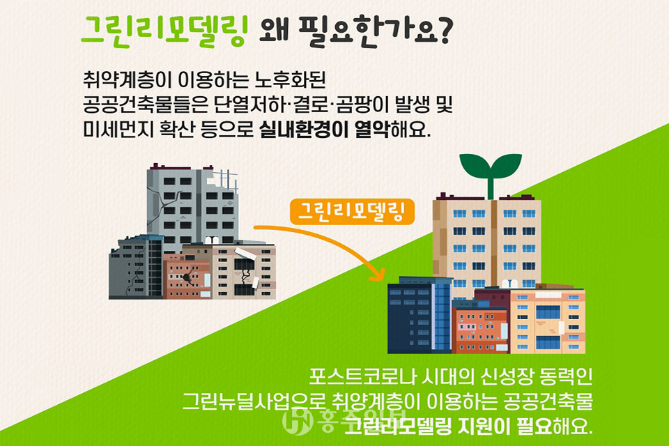공공건축물 그린 리모델링 사업은 준공 후 10년 이상 된 노후 건축물 중 에너지 성능을 개선할 필요가 있는 △국공립 어린이집 △직장어린이집 △보건소 △보건지소 △공공보건의료기관 등을 대상으로 하며, 올해는 △경로당 △파출소 △도서관도 추가됐다.
