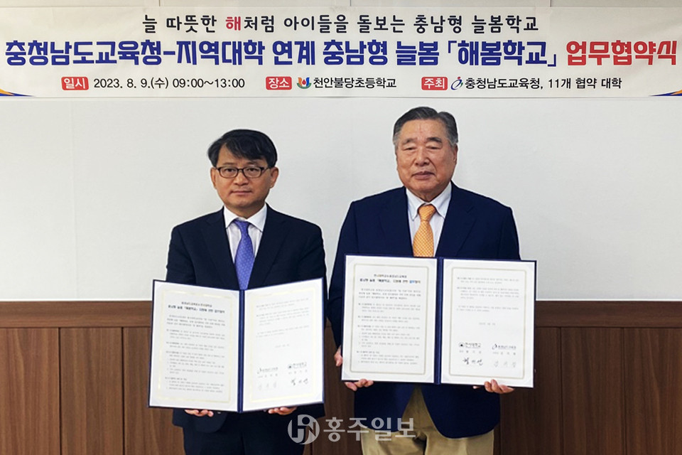 이번 업무협약은 국정과제의 하나인 초등 전일제 교육(돌봄교실을 20시까지 확대)을 위한 충남교육청의 프로젝트인 충남형 늘봄학교(해당학교)에 대학들이 참여해 내실화를 기하기 위한 목적으로 체결됐다.