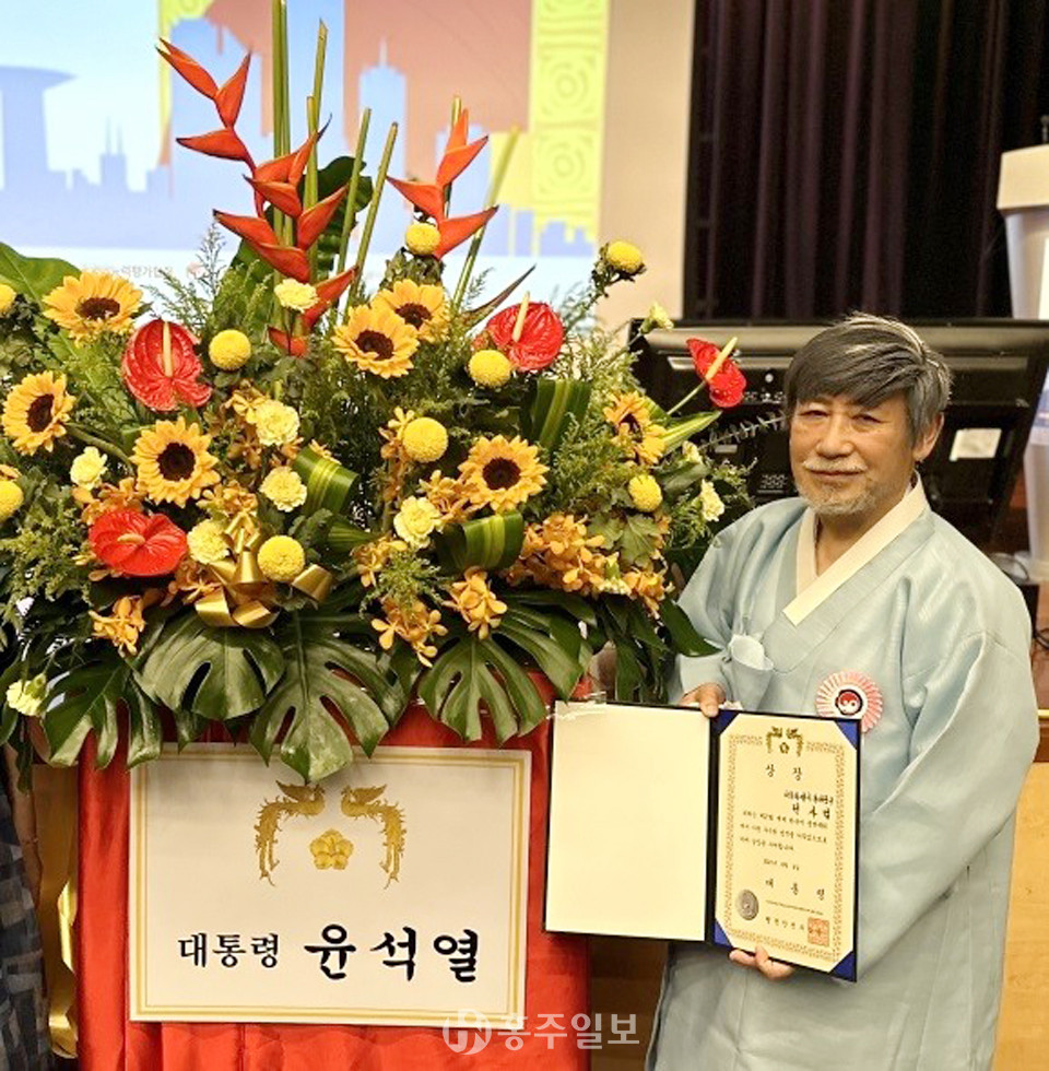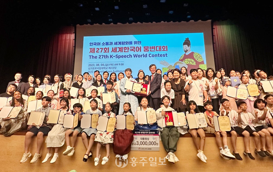 지난 4일 싱가포르 국립대학교(NUS)에서 개최된 세계 19개국 연사가 참여한 ‘제27회 세계 한국어웅변대회’에서 광천 출신의 편사범 회장(70·동화구연아버지회 회장)이 일반부에서 대통령상을 수상했다.