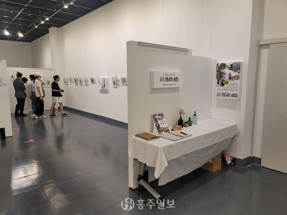 지난 8월 1일부터 13일까지 충남도서관 2층 기획전시실에서 개최된 ‘홍성전통시장 사람들’ 어반드로잉 3차 전시회가 관람객들의 호평 속에서 성공적으로 개최됐다.<사진>