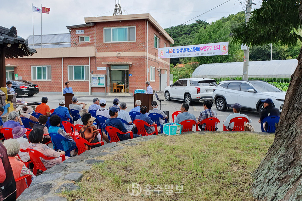 홍성읍 월산1리(이장 유태섭)는 22일 오전 11시 마을회관 느티나무 앞에서 마을주민 70여 명을 비롯한 라대경 홍성읍장, 이상근 충남도의회 의원, 권영식·김은미·최선경 홍성군의회 의원 등 내·외빈이 참석한 가운데 성황리에 ‘제60회 마을주민 위안잔치’를 진행했다.<사진>