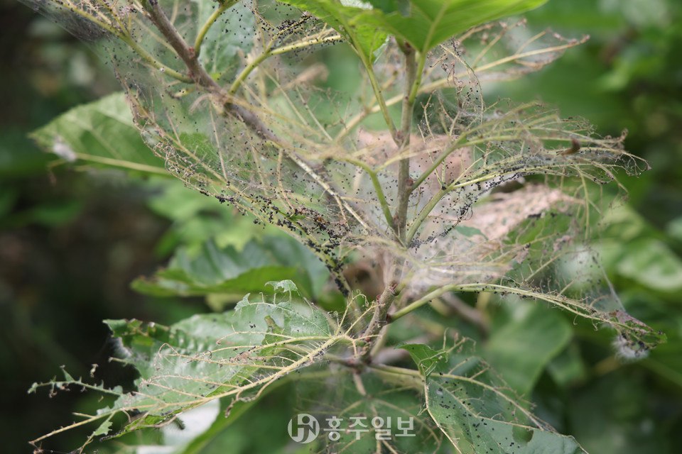 활엽수 잎을 갉아 먹어 나무를 고사에 이르게 하는 미국흰불나방 피해가 홍성지역 전역에서 어렵지 않게 발견되는 등 예년보다 피해가 커지고 있어 방제 활동을 펼치고 있는 홍성군은 물론 농민들이 촉각을 곤두세우고 있다.