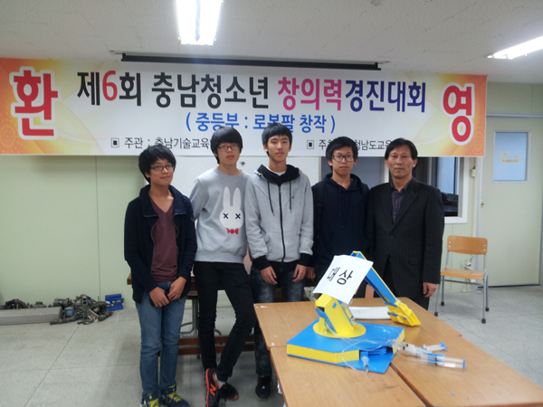 홍성중학교(교장 임도순)는 지난 19일 천안제일고에서 열린 2012년 제6회 충남청소년창의력경진대회 로봇팔 창작부분에서 대상을 수상하는 영광을 차지했다.