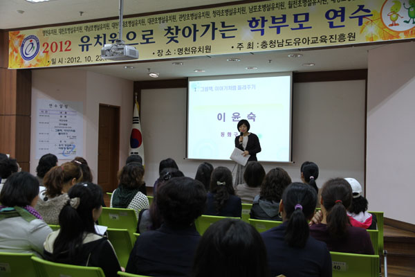 충청남도유아교육진흥원(원장 김화희)은 지난 23일 명천유치원(원장 양관규)에서 ‘2012 유치원으로 찾아가는 학부모 연수’를 실시했다. 이번 연수는 보령지역의 명천유치원 외 9개 유치원 100여명의 학부모가 참여하는 가운데 진행됐다.