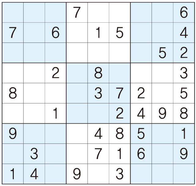 3. 큰 정사각형(9x9) 안에 있는 작은 정사각형(3x3) 안에는 숫자 1~9가 각 한 번씩 들어간다.