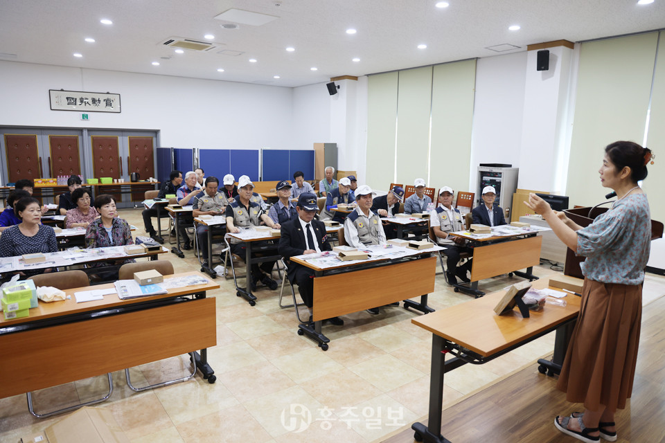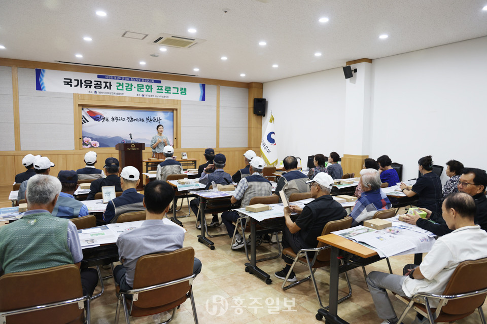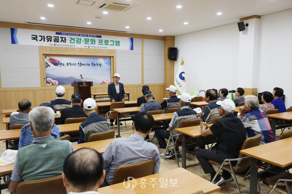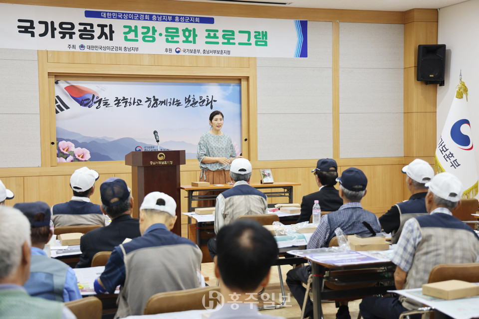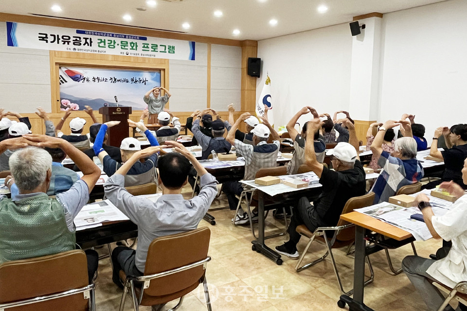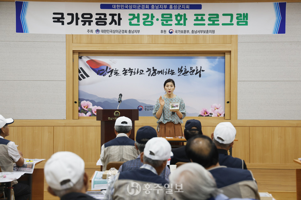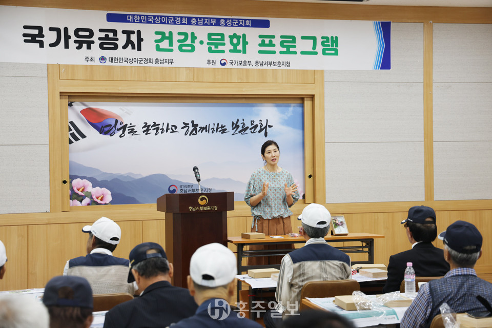 대한민국상이군경회 충남지부 홍성군지회(지회장 신배균)는 30일 충남서부보훈지청 3층 대회의실에서 관내 보훈가족을 대상으로 건강·문화교실을 진행했다.<사진>