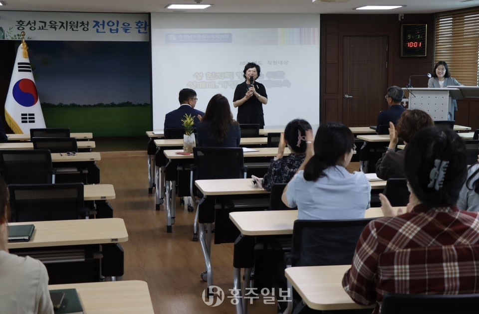 홍성교육지원청(교육장 이정순)은 1일 3층 대회의실에서 전직원을 대상으로 성매매와 가정폭력 예방을 위한 교육을 실시하였다.<사진>
