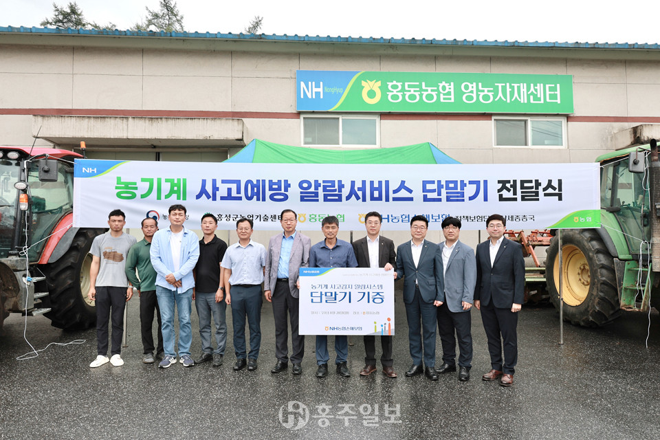 홍동농업협동조합(조합장 주정산)은 지난달 28일 농업기계 사고 알람시스템 증정식을 진행했다.<사진>