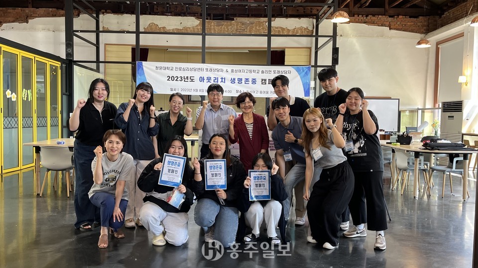 이날 청운대의 전문상담사와 또래상담사는 홍성여자고등학교를 방문해 솔리언 또래상담사와 함께 300여 명의 고등학생을 대상으로 자살예방과 생명존중의 중요성을 알리는 캠페인을 펼쳤다.