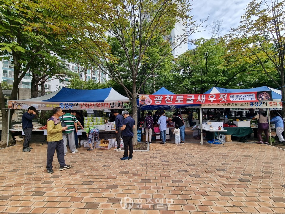 홍성군이 지난 20일과 21일 서울시 양천구 신정6동과 강남구 역삼2동에서 열린 추석맞이 직거래 장터에 참여해 홍성군에서 생산한 우수한 농특산물을 성황리에 판매했다.<사진>