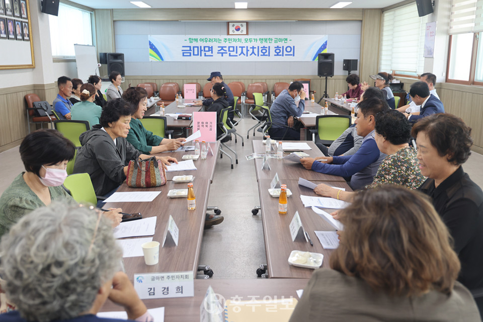 한편 금마면에서는 이날 회의를 통해 △9월 정기분 재산세 납부 △10월 나라사랑 태극기 달기 운동 △주민·공무원 아이디어 공모전 △추석 연휴 생활 쓰레기 수거 일정 △독감(인플루엔자) 예방 접종 △농지법 주료 개정사항 등을 안내하고 홍보했다.