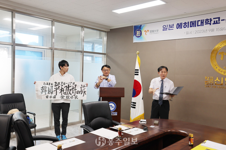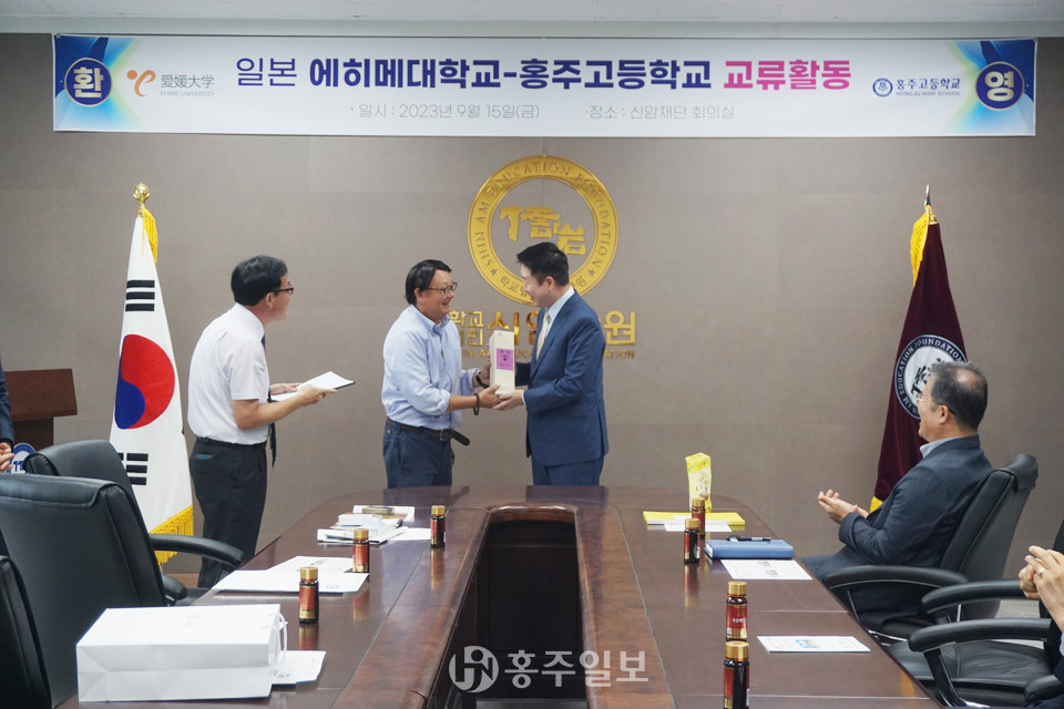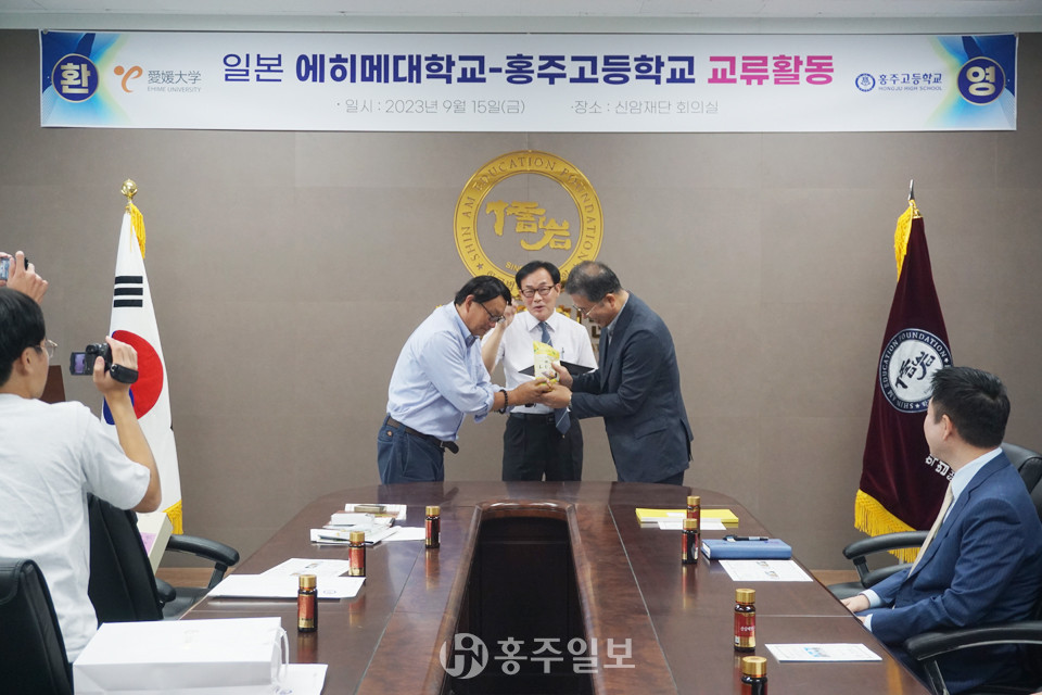 홍주고등학교(교장 유영석)에 반가운 손님이 찾아왔다. 유영석 교장과의 친분으로 매년 예산군을 찾았던 일본의 에히메대학에서 평화학을 가르치고 있는 와다 토시히로(和田聰宏) 교수가 5년 만에 방한하며 유 교장을 만나기 위해 홍주고를 방문한 것.