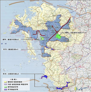충남도는 지난 9월 건설교통부에 승인신청 기획예산처, 환경부 등 18개 중앙관계부처와의 협의를 거쳐 당초 내포문화권역인 충남 서산·보령시, 홍성·예산·태안·당진군 등 2개시 4개 군 955㎢ 일원 중 기존 권역을 조정, 서천군이 추가된 2개시 5개 군을 '내포문화권 특정지역'으로 변경·지정하기로 확정했다고 발표했다.