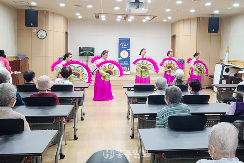 소요예술단(단장 이정옥)은 한가위를 맞아 지난달 20일 홍성의료원 별관대회의실에서 주간보호센터 어르신 20여 명과 의료원 직원들에게 흥겨운 효나눔 콘서트를 펼쳤다. 또한 예술단은 어르신들을 위한 명절 떡과 음료수도 제공했다.