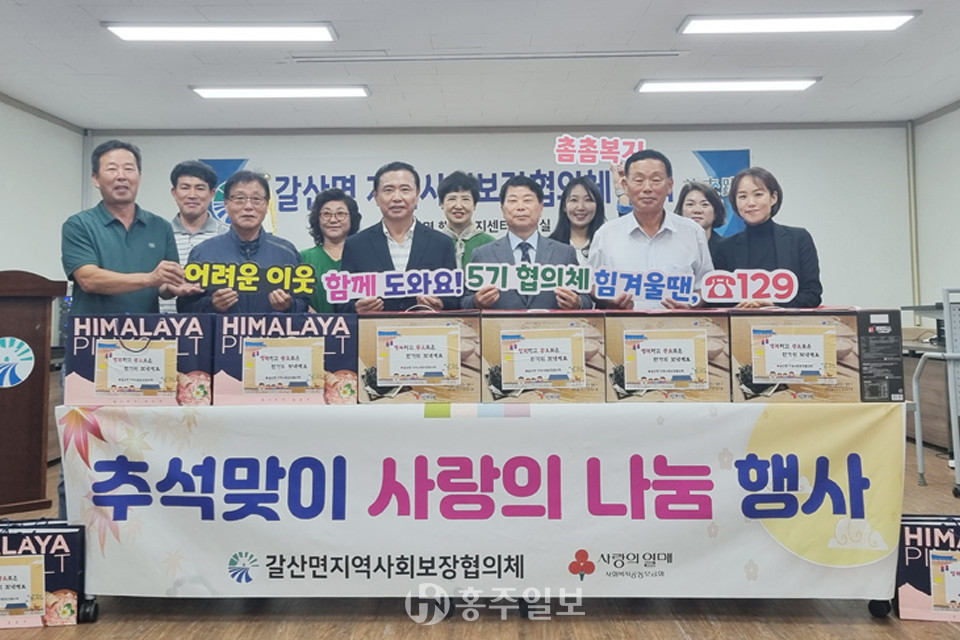 갈산면 지역사회복지협의체(공공위원장 유영길, 민간위원장 정동선)는 지난달 20일 갈산면 행정복지센터에서 제5기 지역사회보장협의체 위원 위촉식·3분기 정기회의를 개최했다. 아울러 추석을 맞아 어려운 이웃을 위해 생필품 등을 전달했다.