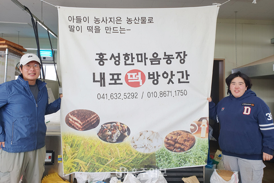 홍성의 소금강 용봉산 자락이 훤히 보이는 홍북읍 봉신리에 자리 잡은 ‘내포 떡 방앗간(공동대표 방혜진·방현진)’은 직접 재배한 유기농 농산물을 활용하는 것이 특징인 곳이다.