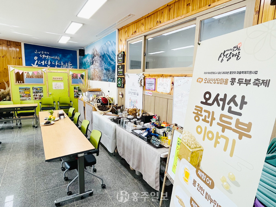 오서산상담마을 입구에 위치한 ‘오서산산촌마을센터’에서는 주기적으로 마을 주민들과 방문객을 위한 다양한 프로그램을 진행하고 있다. 또 주민들이 직접 재배한 농산물도 판매하며 명절을 제외한 연중무휴로 운영되는 꽤나 공간이 널찍한 식당도 있다. 마을 사람들이 참새들의 방앗간처럼 쉼터로 활용하던 곳이 올해 처음 열린 ‘제1회 오서산상담마을 콩 두부 축제’의 발판이 됐다.
