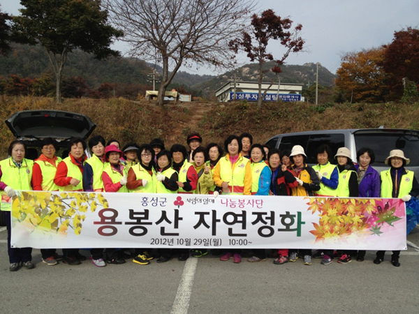 홍성군사랑의열매 나눔봉사단(단장 박정숙)은 지난달 29일 오전 10시 용봉산에서 단원 40여명이 참석한 가운데 자연정화활동을 전개했다. 이번 자연정화활동은 가을을 맞이해 늘어나는 등산객으로 인해 용봉산 등산로 주변에 버려진 각종 쓰레기를 수거함은 물론, 주민들에게 자연의 소중함과 중요성을 홍보하는 시간을 가졌다.