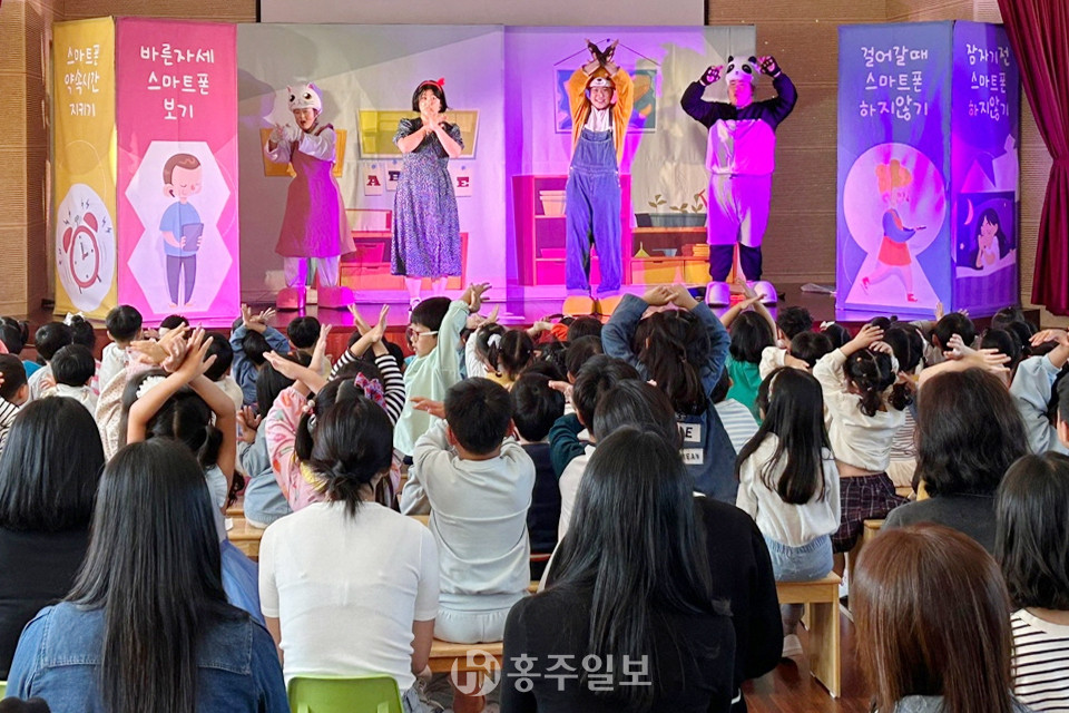 한국지능정보사회진흥원(NIA) 충남스마트쉼센터(소장 최명옥)는 5일 계룡 소재 성모유치원(원장 하맹희)에서 유아 자녀를 둔 가족을 대상으로 스마트폰 과의존 예방을 위한 뮤지컬 인형극 공연과 부모교육을 실시했다.<사진>