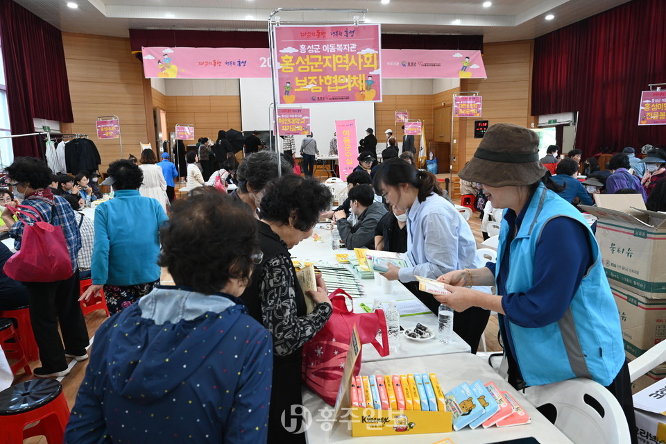 홍성군과 ㈔홍성군자원봉사센터는 지난 5일 홍주초등학교 체육관(대강당)에서 홍성읍민들을 대상으로 ‘2023년 행복싣고 찾아가는 이동복지관’을 운영하며 큰 호응을 얻었다.<사진>