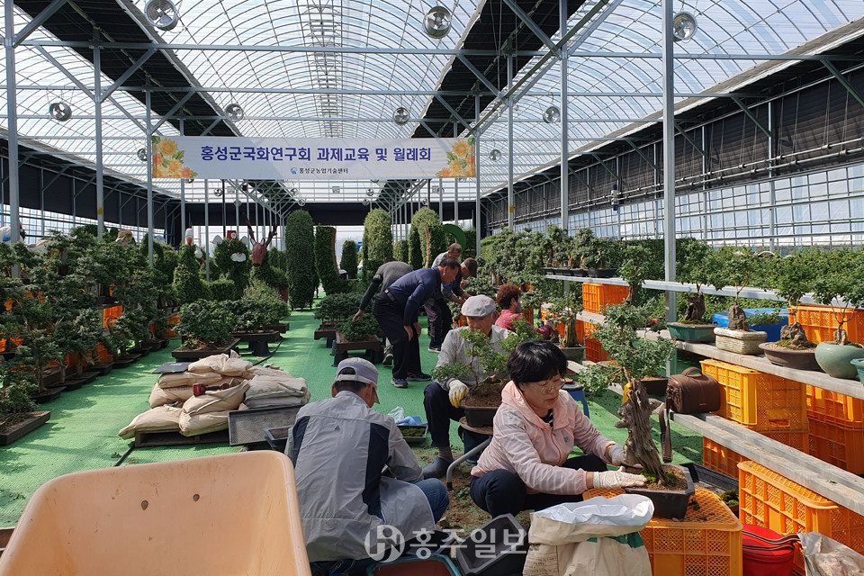 홍성군국화연구회(회장 김선분)는 6일 오전 11시 국화재배실증포 온실에서 회원 14명이 참석한 가운데 현장 실습 월례회를 진행했다.<사진>