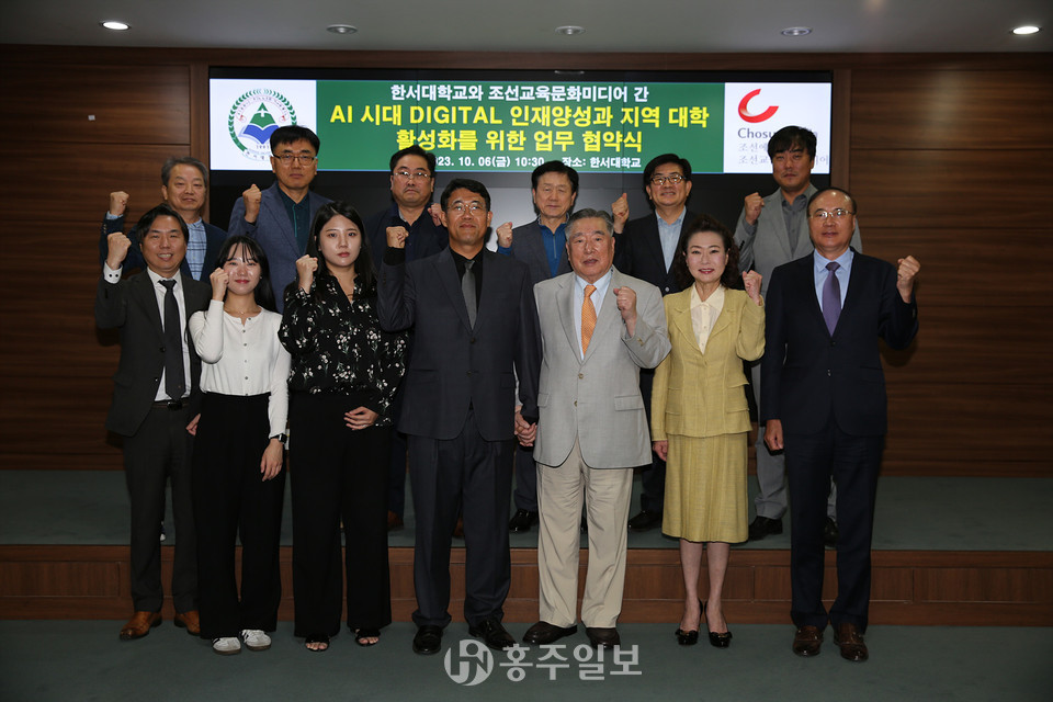 한서대학교와 ㈜조선교육문화미디어가 업무협력 협약식을 지난 6일 한서대 본관 3층 대회의실에서 체결하고 디지털 인재양성과 지역 대학의 활성화를 위한 각종 사업의 공동기획과 추진, 홍보마케팅 등에 협력하기로 했다.<사진>