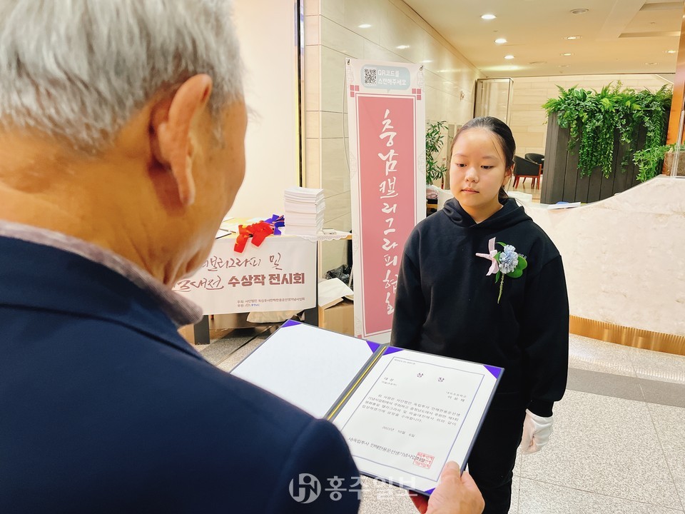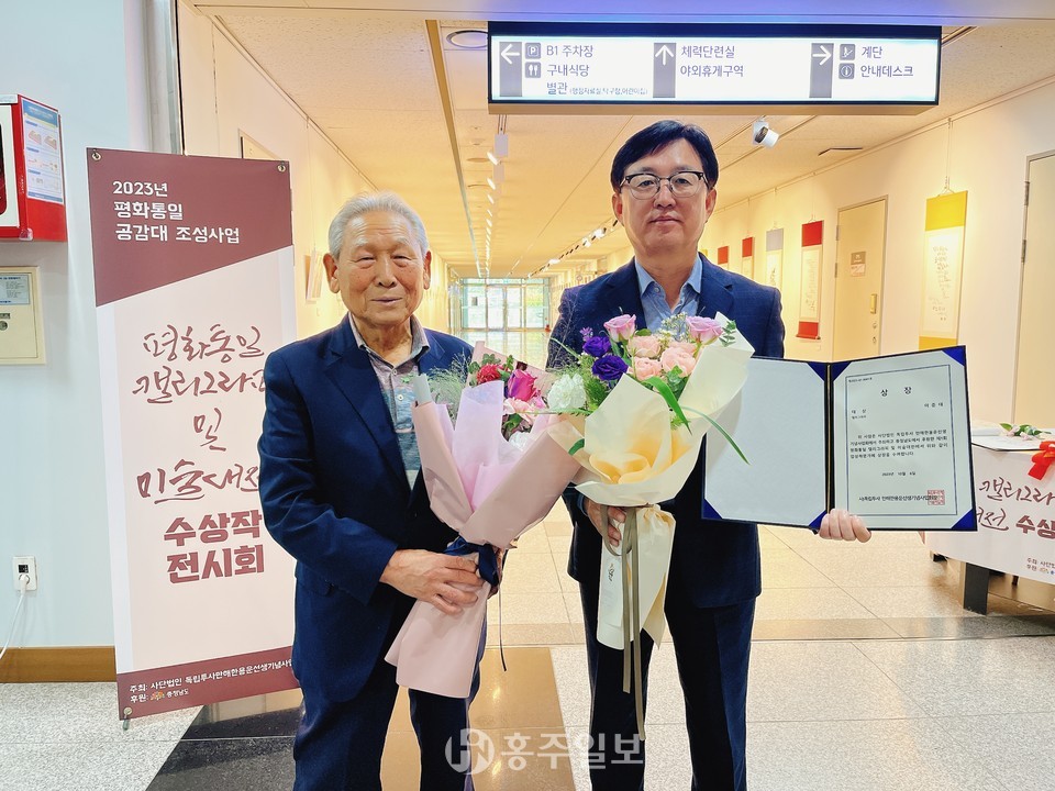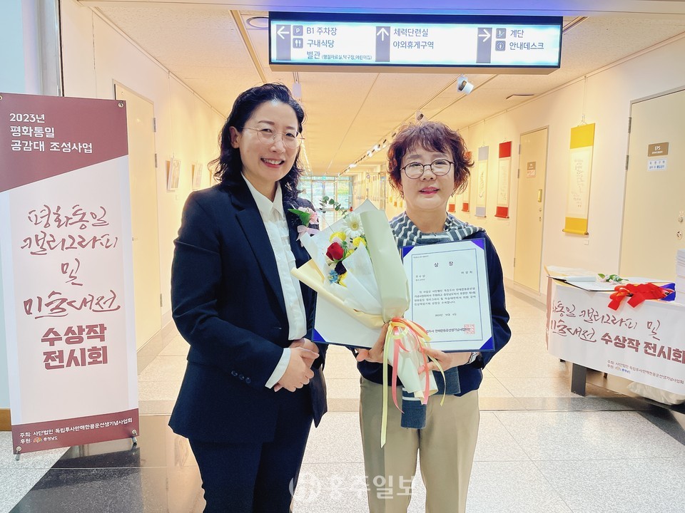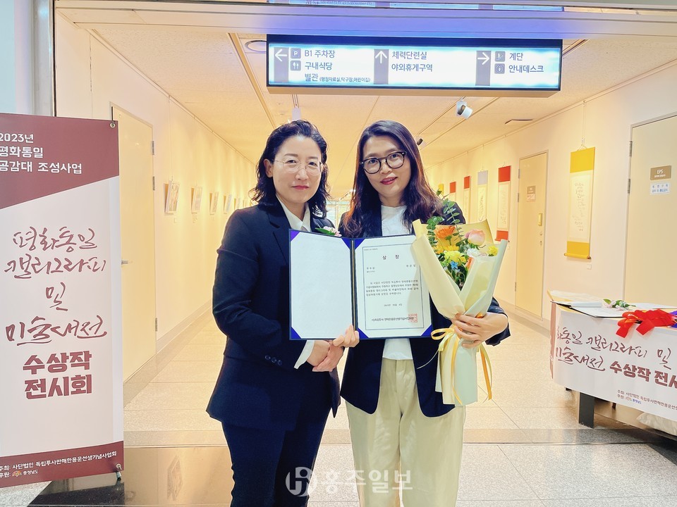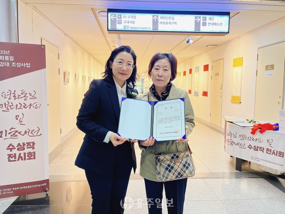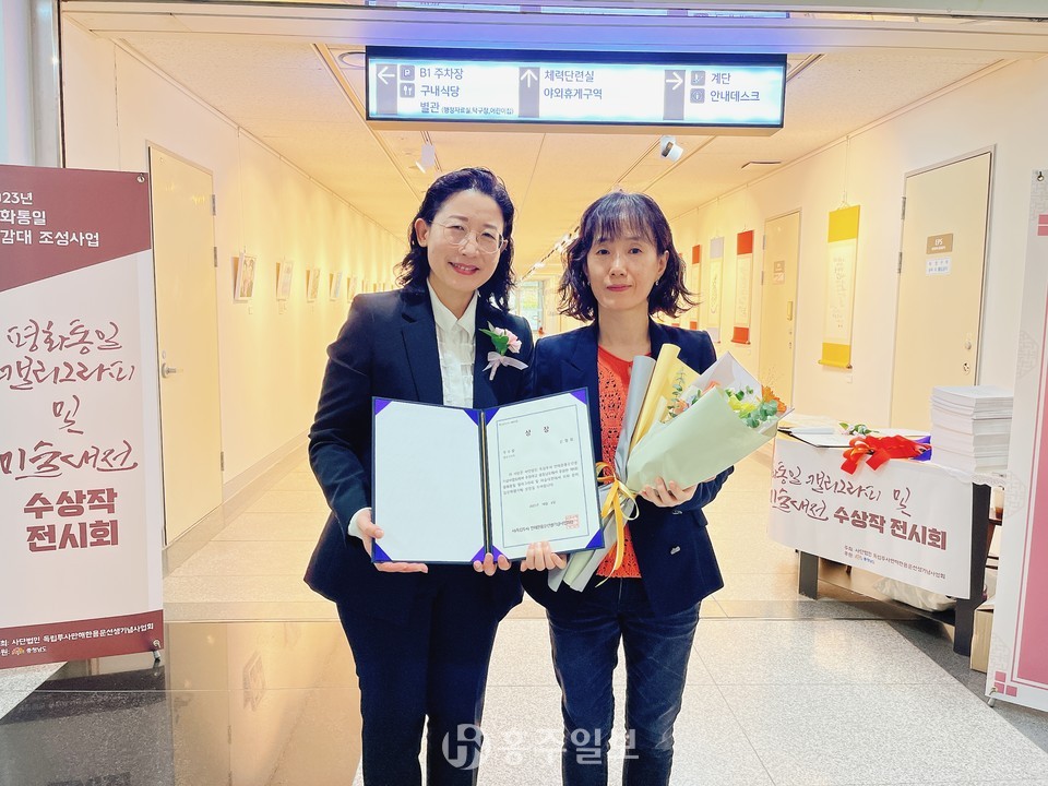 ㈔만해한용운선생기념사업회(회장 이소용)는 민족의 아픔 6·25한국전쟁을 기억하고 더 나은 미래를 위해 호국보훈의 정신을 되새기기 위한 ‘제1회 평화통일 캘리그라피 및 미술대전’ 시상식을 지난 6일 충남도청 갤러리에서 개최했다.<사진>