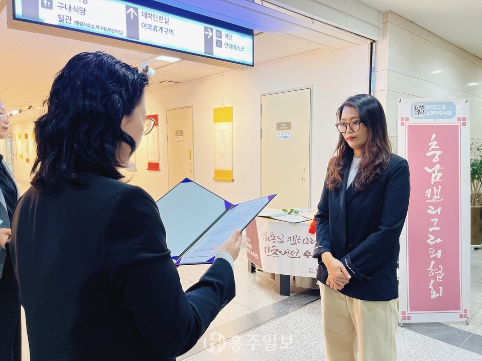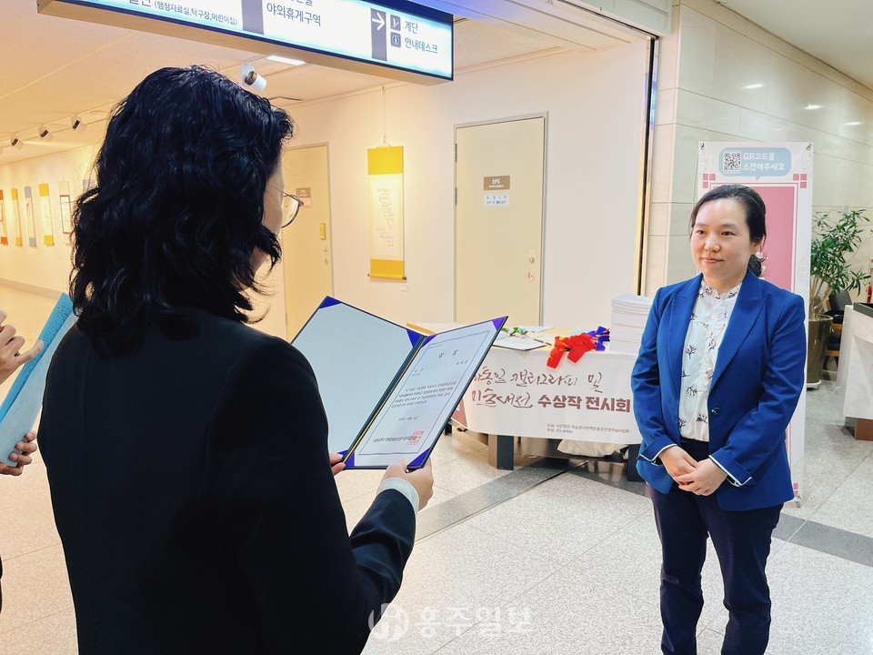 이날 시상식은 이소용 만해한용운선생기념사업회장을 비롯해 최윤희 충남캘리그라피협회장, 이평구 이종일기념사업회 상임이사, 황인성 충남도청공무원노동조합위원장 등 내·외빈과 수상자들이 참석한 가운데 지난 8월 16일부터 한 달여간 접수받은 캘리그라피와 그림 작품에 대한 공모전 시상식과 함께 수상작품 전시회 개막식이 진행됐다.