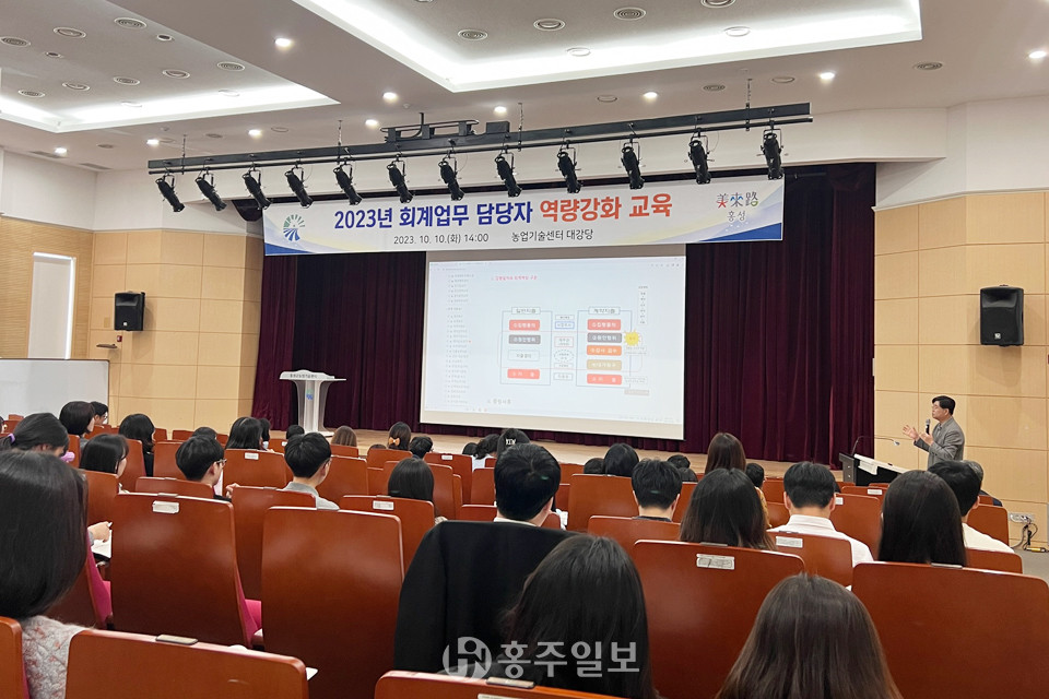 홍성군은 지난 10일 홍성군농업기술센터 대강당에서 회계업무 담당자 등 100여 명을 대상으로 회계업무에 대한 전문성 제고를 위한 역량강화 교육을 실시했다.<사진>