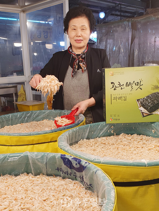 사진은 지난 10일 광천전통시장 상인들이 성공적인 축제 개최를 희망하며 광천토굴새우젓과 광천김을 내보이고 있는 모습.