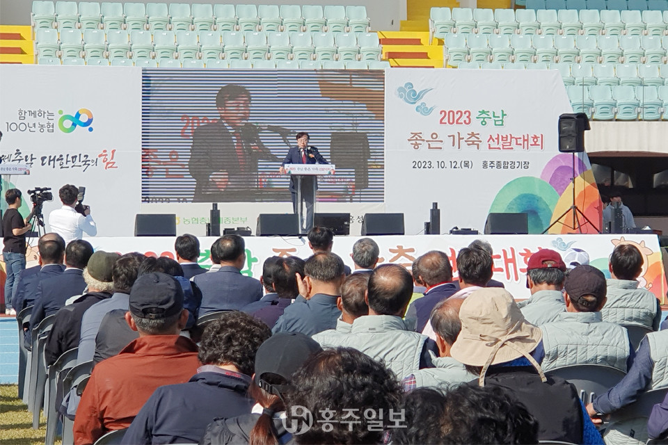 좋은 가축 선발·고급육 경진대회가 지난 12일 김태흠 충남도지사와 농·축협 관계자·도내 축산농가 등 3000여 명이 참석한 가운데 홍성군 홍주종합경기장에서 개최됐다.<사진>