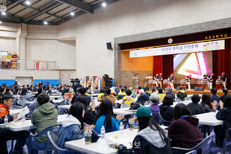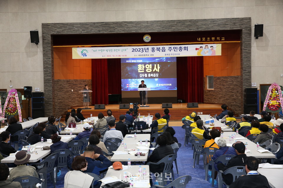 홍북읍주민자치회(회장 정윤)는 지난 21일 내포초등학교 강당에서 2024년 자치계획(사업) 등을 결정하기 위해 ‘2023년 홍북읍 주민총회’를 개최했다.<사진>