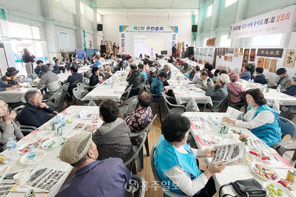 주민총회에는 이용록 홍성군수, 이선균 홍성군의회 의장과 의원들을 비롯해 홍문표 국회의원, 이종화·이상근 충남도의회 의원 등이 참석해 자리를 빛냈다.