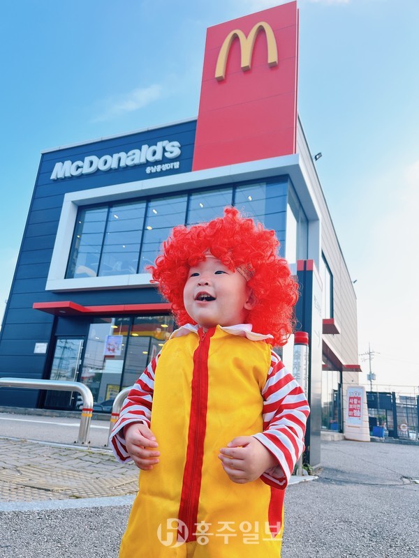 내포신도시에 거주하고 있는 이명용(33)·윤솔(33) 부부의 둘째 아들인 예찬 군이 10월 31일 핼로윈데이를 맞이해 꼬마 도널드 맥도널드 복장을 입고 홍성DT점에 나타난 것.