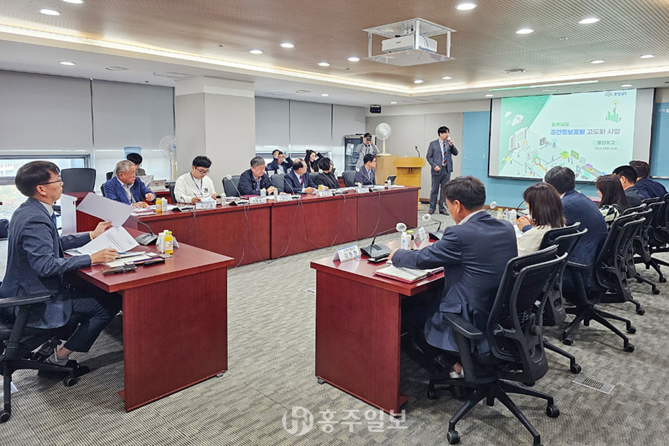 충남도는 지난달 26일 도청 소회의실에서 ‘충남 공간정보 포털 고도화 사업’ 중간보고회를 개최했다.<사진>