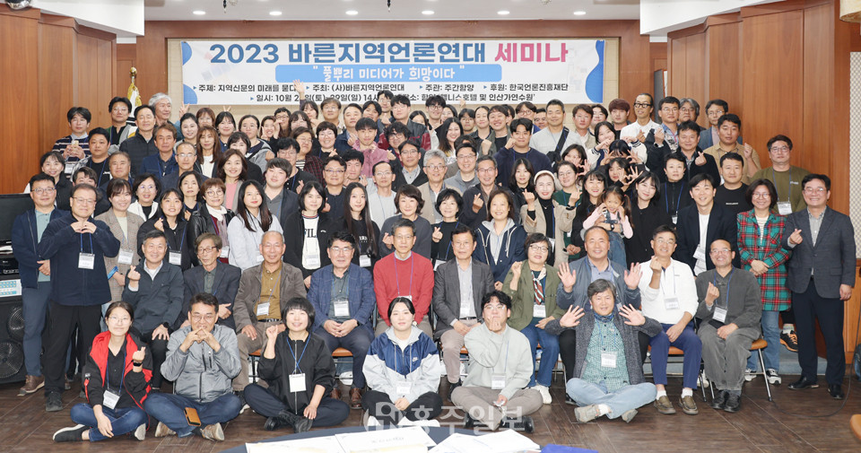 2023 바른지역언론연대(회장 최종길·이하 바지연) 세미나가 지난달 28~29일 양일간 경남 함양군 인산가 연수원에서 열렸다. 전국 53개 풀뿌리지역언론 연대모임인 바른지역언론연대가 주최, 주간함양(대표 최경인)이 주관, 한국언론진흥재단이 후원한 이번 행사에는 34개 회원사 150여 명의 지역 언론인들이 모여 ‘지역신문의 미래를 묻다’라는 주제 아래 모두 함께 고민하는 시간을 가졌다.<사진>