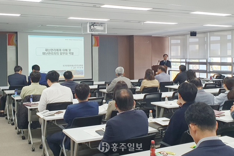 이날 교육은 재난 전문가인 차정회 전 행정안전부 국가민방위재난안전교육원 교수가 재난대응체계의 이해와 재난관리자의 임무를 주제로 진행했다.