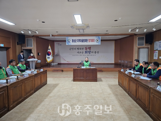 홍성군지역자율방재단이 자율방재단 활성화를 위해 지난 6일 군청 대강당에서 읍·면 방재단 임원들과 실무회의를 개최했다.<사진>