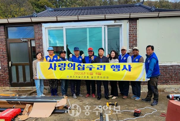 갈산면바르게살기위원회(위원장 차기준)는 지난 6일 주거 취약 가구 집수리 봉사활동을 펼쳤다.<사진>